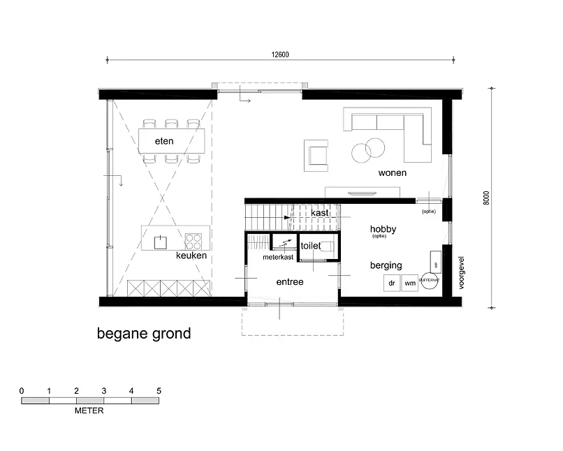 Casco oplevering inclusief gevelbekleding, kozijnen en dakafwerking.