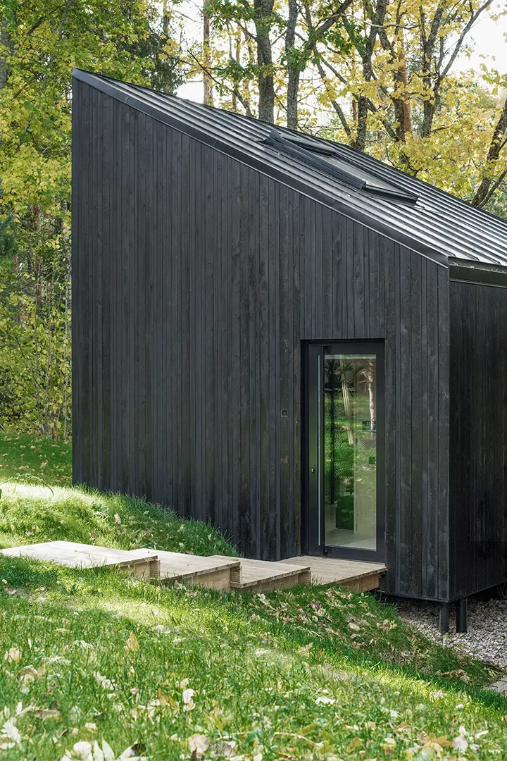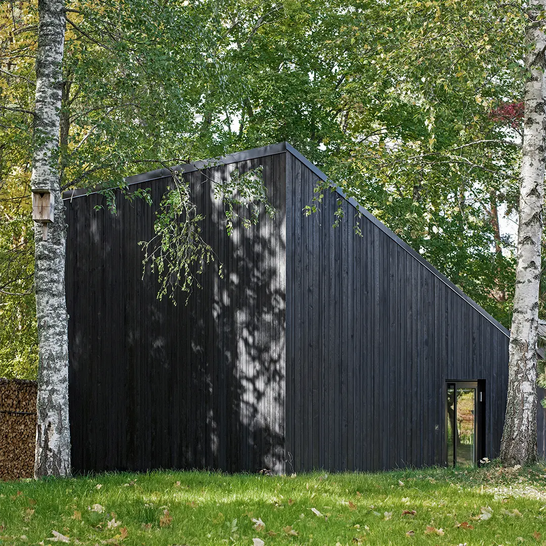 De zwarte glanstechniek van de gevelafwerking is geïnspireerd en komt voort uit de oude Vikingtradities, waardoor het huis zeer lang meegaat.